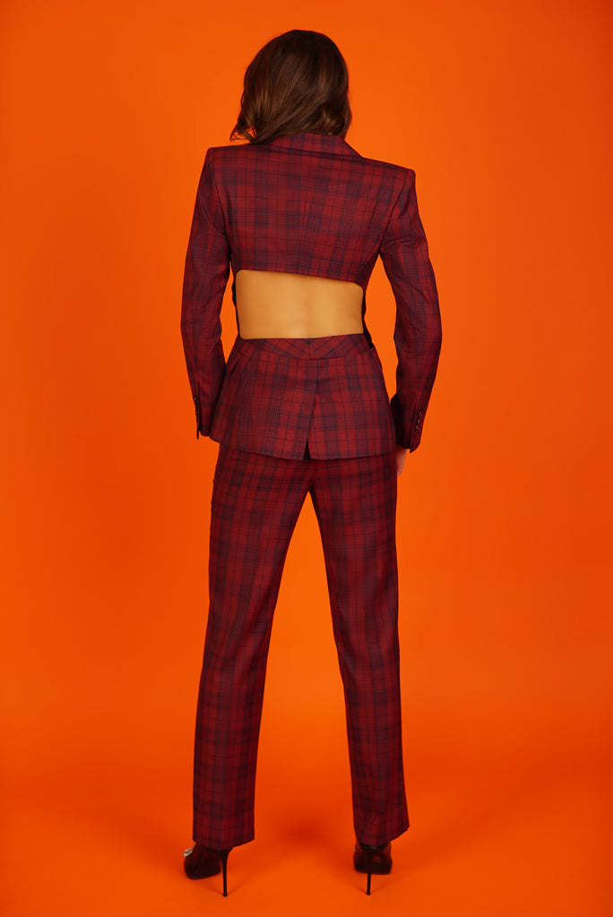 Our Marlene blazer is a peak lapel, fitted & backless blazer that's ready for a show! The cutout is placed so you can still wear a bra– but, dare to wear her with nothing else.